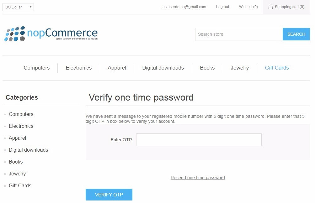 - Customer Mobile Number Verification using OTP (One Time Password) on Registration and on Mobile Number change event, with themable front-end view template.