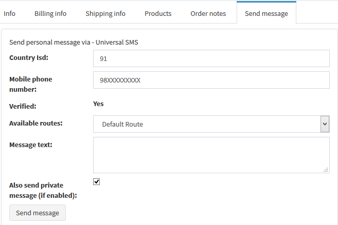 - Comes with developer API to send SMS messages, so when the SMS plugin is installed and activated one can send SMS by consuming this developer API either from nopCommerce project or from third party plugin.