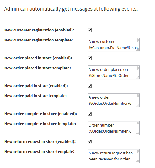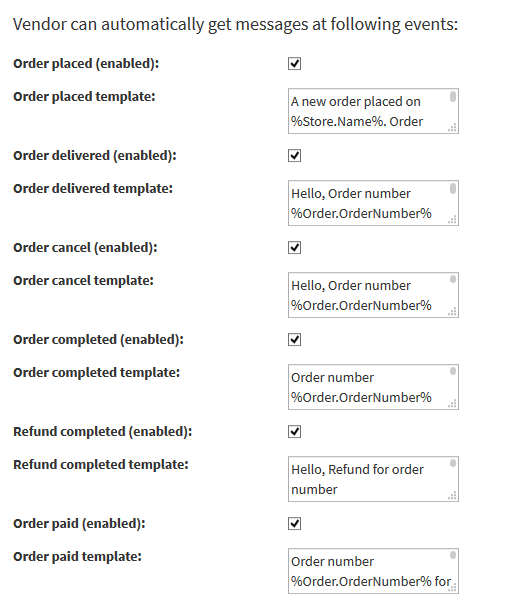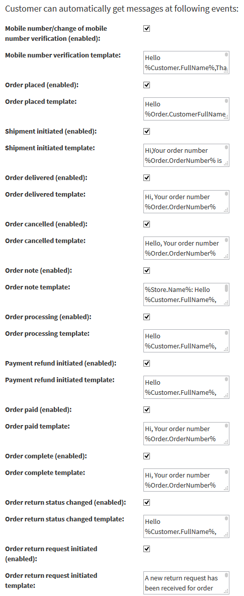 - Editable SMS Templates for supported events with tokens.