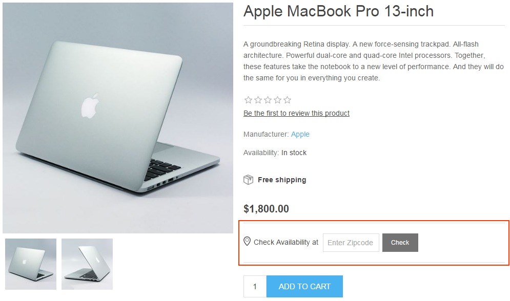 - Display your visitors whether you offer shipments to their location, using Zip Code.